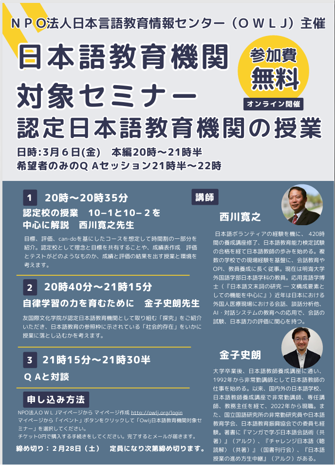 主催:NPO法人日本言語教育情報センター(OwlJ) https://owlj.org